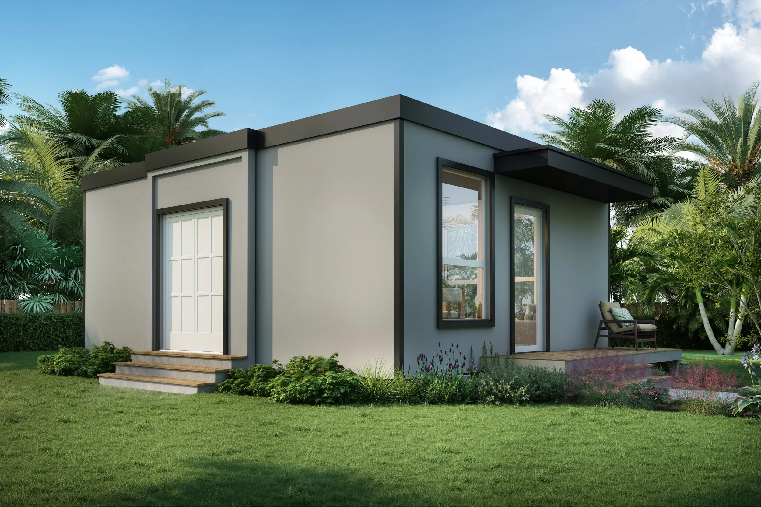 Whether you choose a 300 square foot Accessory Dwelling Unit, a 450 SF one bedroom, or the popular 1,100 SF 2-3 bedroom, 2 bath house model, Mesocore efficient, proven designs maximize space for comfortable living. Architectural exterior details and trim can be added or painted as you desire.