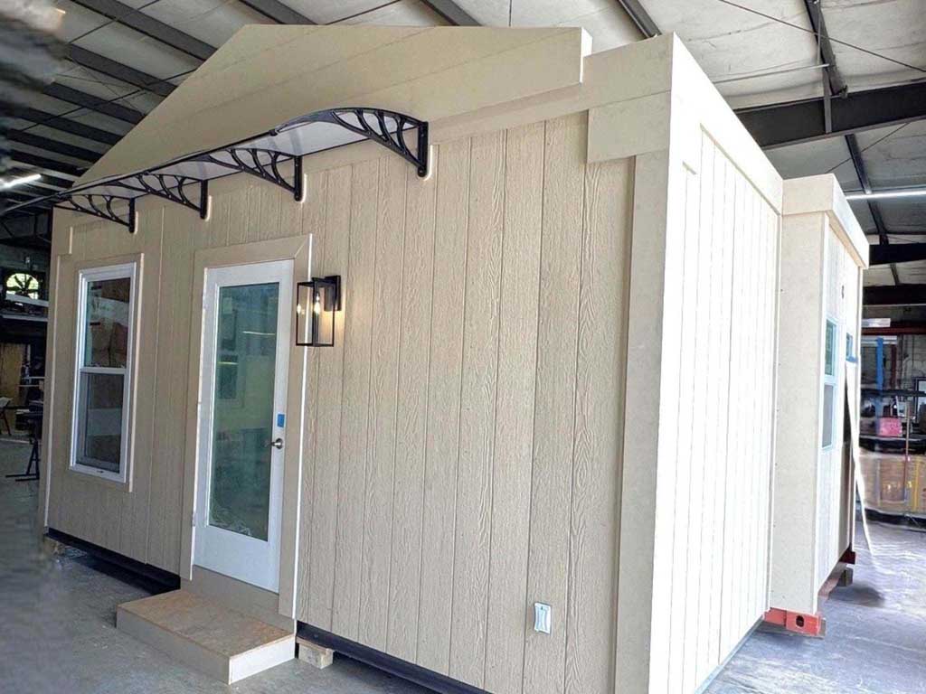 Comfortable space with separate bedroom and living— Ideal for a home office, guest suite, pool house or compact rental with full kitchen and full bath. On-site installtaion in as little as 10 days.